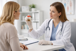 Despite these features, symptoms may overlap, and it is not always possible to distinguish viral from bacterial infection based solely on clinical presentation. For this reason, the presence of blood in the stool, prolonged symptoms, or worsening of the child’s overall condition may require microbiological testing of a stool sample in order to identify the causative organism and determine whether specific treatment is needed.
