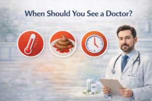 In the presence of persistent symptoms, signs of dehydration, high fever, blood in the stool, or worsening of the general condition, prompt medical evaluation is necessary.