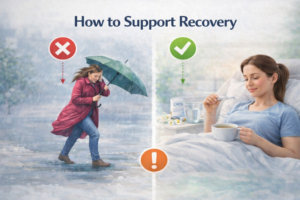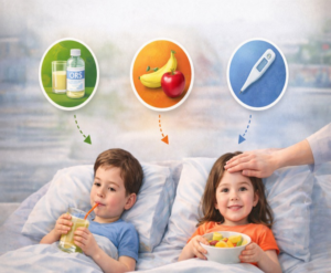 In young children, the risk of dehydration is higher, as they lose fluids more quickly. Therefore, careful monitoring is especially important. If the child is lethargic, refuses fluids, or has decreased urination, these are warning signs and should be immediately evaluated by a doctor to avoid complications.
